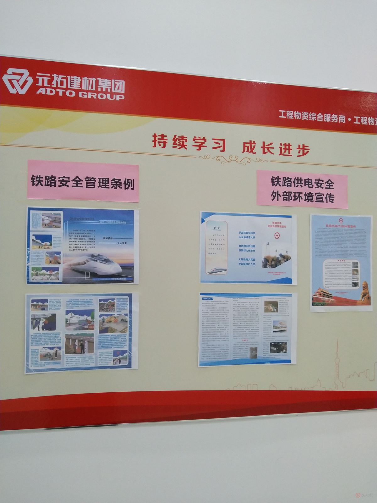 为了积极贯彻落实长沙市望城区交通运输局《关于协助开展铁路爱路宣传的函》有关精神,元拓建材集团为提高公司员工的安全意识,特在公司学习园地等区域进行了《铁路安全管理条例》、《铁路安全用电》相关知识的宣传,让元拓人在感受到铁路带给出行方便、快捷的同时,也使每一个人进一步了解了铁路安全常识,进而自觉约束自己的行为。为了自己和家人安全,遵守安全条约、维护铁路安全至关重要。