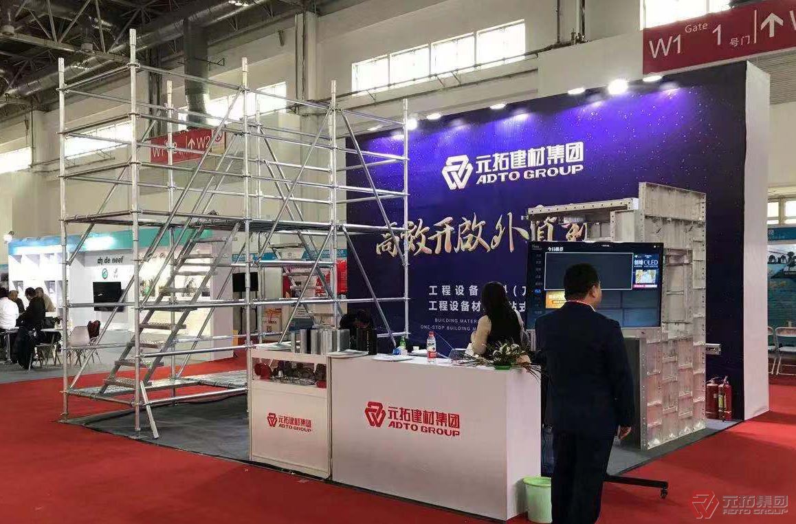 在展览会上,元拓建材集团携带盘扣脚手架、铝模、管材等明星产品亮相,吸引了众多与会领导和专业客商前来指导交流和洽谈业务。