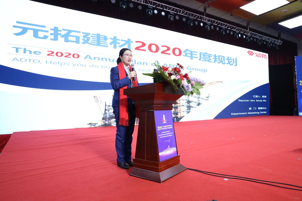 大会在庄严肃穆的中华人民共和国国歌中拉开帷幕。集团营销中心总经理吴渊就本届展洽会进行了成果汇报,并围绕元拓建材2020年经营指标做了整体规划。