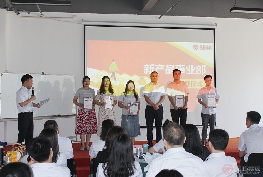 7月27日,元拓建材在长沙望城总部举行了新产品事业部授证仪式,董事长游炎明、副总裁胡清林为各产品事业部负责人颁发了经营证书。意味着元拓专攻国际市场的48个单品事业部、20个事业部、1个事业群正式成立。